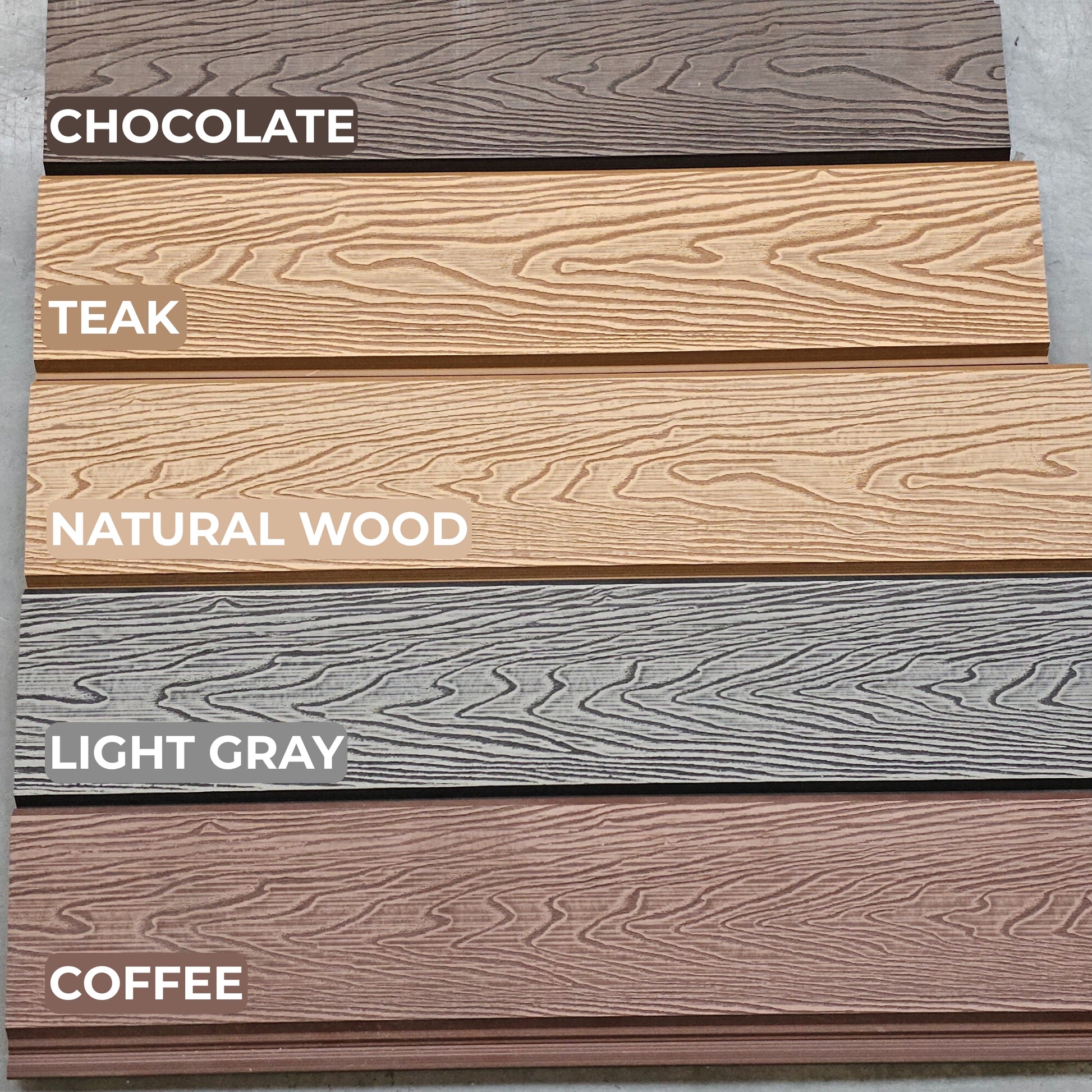 Available in Teak, Coffee, Gray, and Chocolate finishes, they suit both classic and contemporary designs. Easy to install and low-maintenance, this cladding is perfect for facades, garden walls, and accent features.